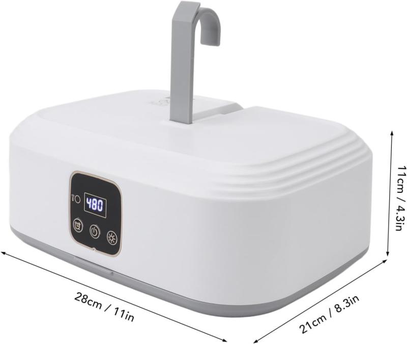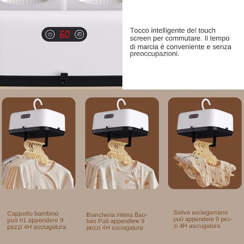 4. RISPARMIO SPAZIO: Misura 28x21x11 cm, questa asciugatrice portatile compatta è adatta per piccoli spazi abitativi come appartamenti, dormitori, o viaggi. Il risparmio di spazio consente di riporlo facilmente quando non in uso, massimizzando lo spazio limitato.