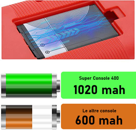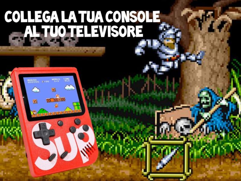 Super Console 400 è la straordinaria console palmare che grazie a più di 400 contenuti, permette di far divertire chiunque da più giovane al più anziano! Super Console 400 è la fantastica console Tascabile che ha sconvolto il mondo dei video game. Ti farà fare un tuffo nei tuoi ricordi del passato più belli grazie al suo design retrò e a più di 400 giochi INTRAMONTABILI degli anni 80/90! Dimensioni ridotte, peso contenuto, scheda grafica da paura, design retrò e schermo da 3.0 pollici sono le caratteristiche vincenti di questa console. Collegala alla Tv tramite il cavo AV in dotazione per un esperienza visiva coinvolgente e suggestiva, con i giochi che hanno segnato la storia delle console!